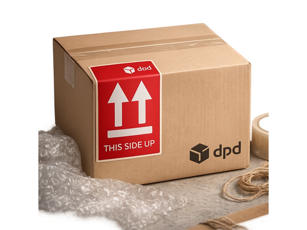Viditeľné označenie pre správnu manipuláciu s balíkom. Pomáha predísť poškodeniu tovaru počas prepravy.