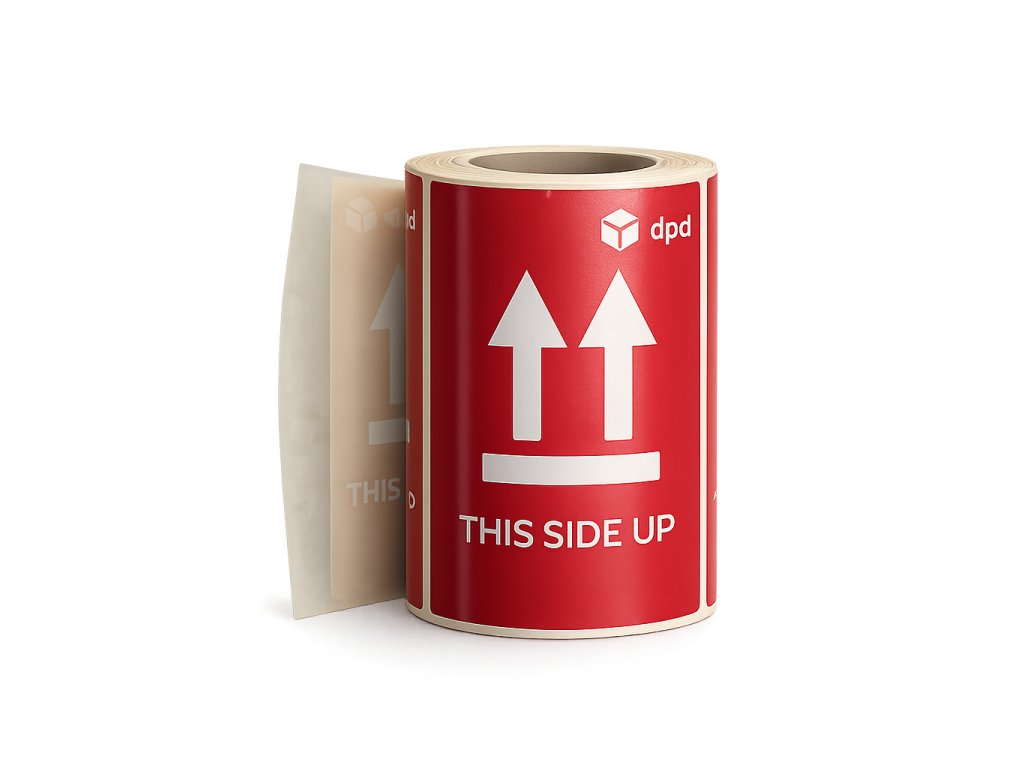 Výstražná nálepka THIS SIDE UP (Neklopiť). Cena/rolka 500 ks